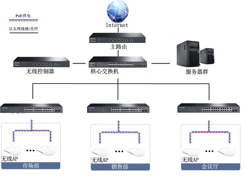 企業(yè)單位網絡較為復雜,對網絡可管理性與可維護性要求較高。無線AP部署位置的靈活性,并且不能成為火災隱患。