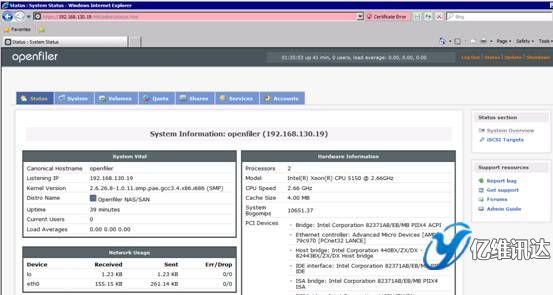 至此為止,在 Openfiler 系統(tǒng)上對 iSCSI 虛擬存儲(chǔ)的配置過程完畢.