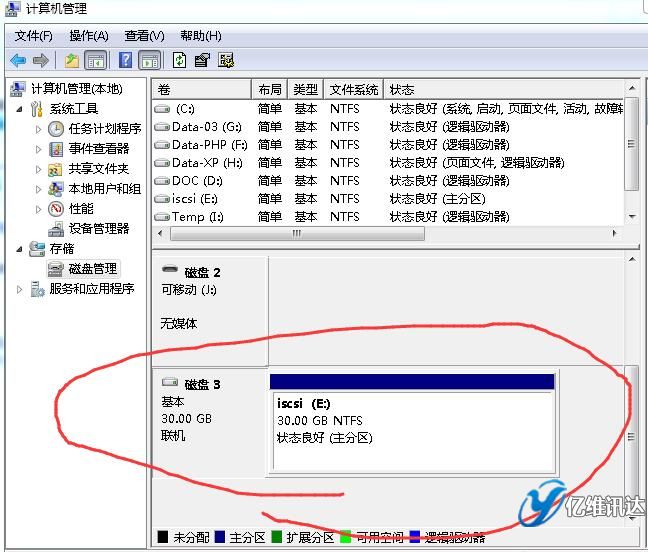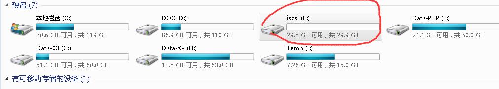 然后,在客戶端(以windows 7為例),看一下,如何連接ISCSI,請訪問《windows server 2008R2部署ISCSI》。
