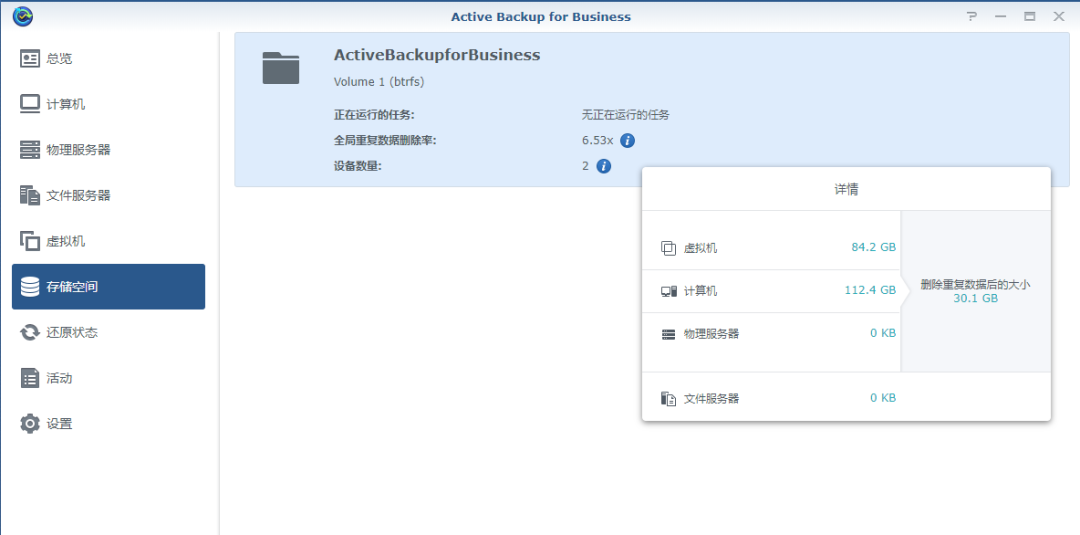 Active Backup for Business為服務(wù)器提供文件和整機(jī)系統(tǒng)備份。通過SMB和rsync方式可以分別備份Windows Server或Linux文件服務(wù)器文件,而且源服務(wù)器不需要部署客戶端。